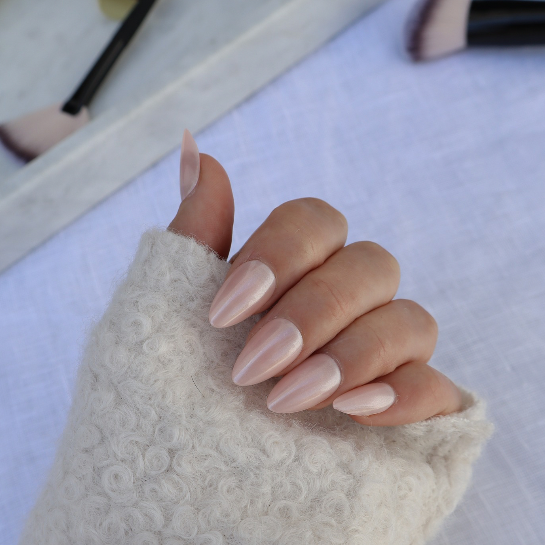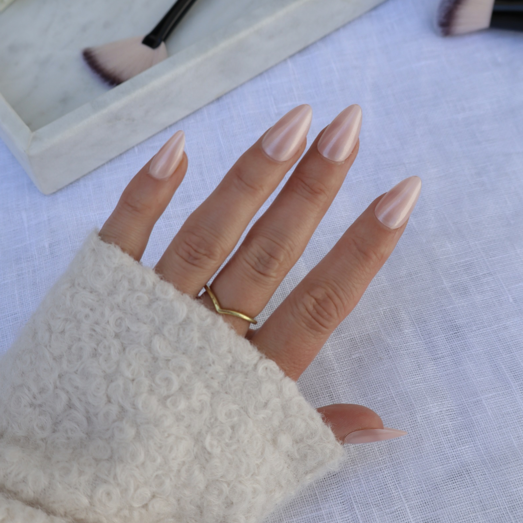 Indulge in the soft pinks of blooming peony flowers with Peony Glaze, thoughtfully designed to capture the timeless and feminine essence of the season. These Short Almond shaped nails offer a delicate, gentle metallic pink shade that will have you looking polished and put together. With their subtle glow, Peony Glaze are effortlessly beautiful and perfect for any occasion no matter where you go. Prepare to receive endless compliments and let them be amazed when you tell them you didn't even have to leave the house for your salon finish manicure! Elevate your nail game with Peony Glaze. You can also shop Peony Glaze as part of our Most Loved Bundle.